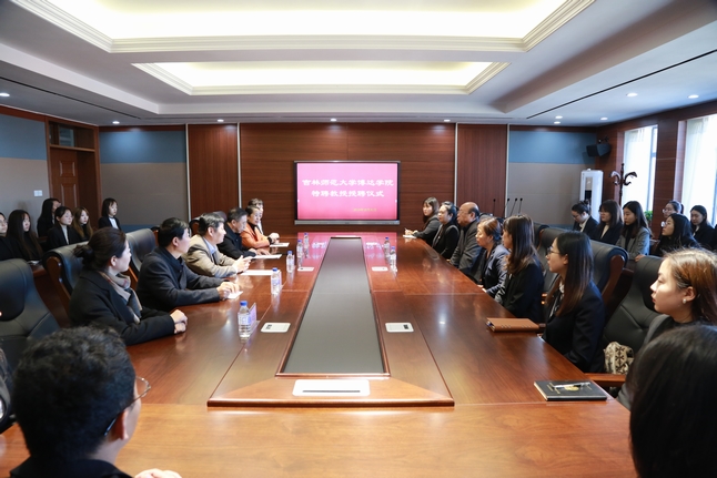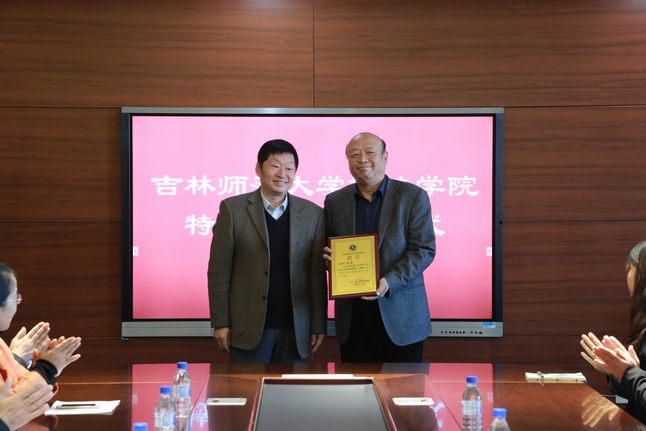 最后,刘平教授发言,他表示对受聘吉林师范大学博达学院特聘教授感到十分荣幸,同时感到责任重大,在今后的工作中一定要利用自身的学术影响力和专业所长为学校的教学、学科建设、科研和师资培养尽自己所能,为学校的发展贡献自己的力量。