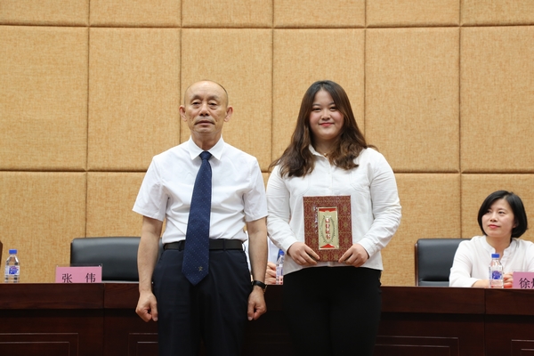 (张伟副院长为2019届优秀毕业生代表邹佳妤同学颁发优秀毕业证书)
