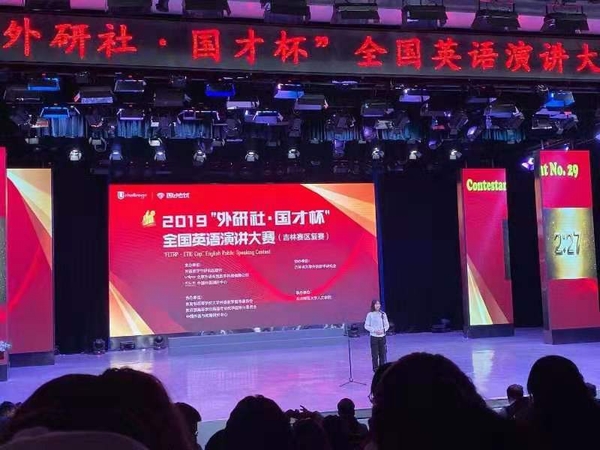 10月19日,由吉林省大学外语教育研究会等单位主办的2019“外研社杯”全国英语演讲大赛吉林赛区复赛在东北师范大学人文学院落下帷幕。我校文学院2017级学生卢竹婷(指导教师张严),获得省赛三等奖。