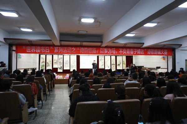 在第24个“4.23世界读书日”来临之际,学校图书馆联合学生工作处、团委、中文系、传媒系、学前教育系共同举办了《诗韵悠扬,以梦为马,不负青春于博达》古典诗词朗诵比赛,共有22组25名选手入围了决赛。