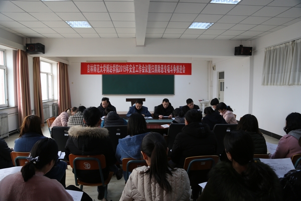 徐春喜副院长首先传达了参加吉林省教育系统扫黑除恶专项斗争推进会精神,保卫处处长于海龙解读了学院2019年《消防安全工作实施方案》及《扫黑除恶专项斗争工作实施方案》,要求各部门高度重视,深挖线索,强化综合治理,明确责任,确保学校安全问题。
